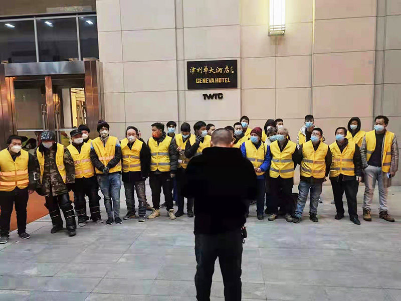 2021年1月15日18:00時(shí),天津三建公司二分公司接到天津市河西區(qū)住建委改造津利華大酒店作為新冠疫情集中隔離點(diǎn)的緊急命令。二分公司黨總支緊急部署,迅速成立樾梅江項(xiàng)目黨支部和張家窩南站黨小組為主的戰(zhàn)斗小組,緊急動(dòng)員黨員干部奔赴施工現(xiàn)場(chǎng),調(diào)集勞動(dòng)力和施工物資,黨支部書(shū)記劉鈁,以及王軍、張宇、邢勝,邢建公,李盛等黨員干部分別從各自的工作崗位、家中向津利華酒店集結(jié),邊開(kāi)車邊組織勞動(dòng)力和施工物資、車輛,僅僅一個(gè)小時(shí),350人的應(yīng)急勞務(wù)大軍和各種施工物資全部集結(jié)到位。