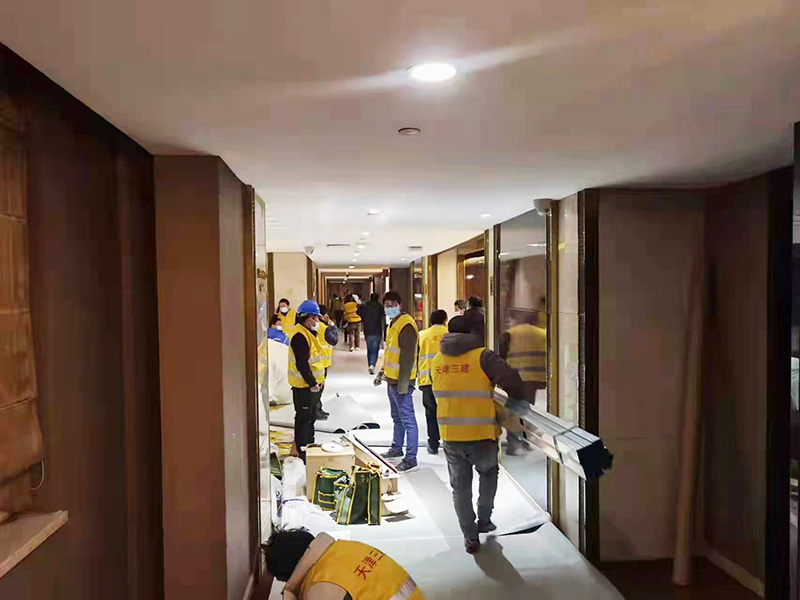 根據(jù)天津市疫情防控指揮部要求,將近兩萬(wàn)平方米,200余間的客房改造任務(wù)必須在24小時(shí)內(nèi)完成并交付使用,時(shí)間緊、責(zé)任重,工作量大。全體參戰(zhàn)黨員干部身兼重任,牢記“疫情就是命令、防控就是責(zé)任”的要求,黨總支書(shū)記趙善伯、支部書(shū)記劉鈁親自上手,帶領(lǐng)黨員干部分層、分段負(fù)責(zé),連續(xù)18個(gè)小時(shí)徹夜奮戰(zhàn),更換所有共同區(qū)域地膠、樓梯間、疫情通道隔墻板,設(shè)置各樓層消殺照明、應(yīng)急照明等設(shè)施,提前兩個(gè)小時(shí)干凈整潔交付給市疫情防控指揮部,得到了市疫情指揮部、河西區(qū)住建委、酒店管理的高度肯定和贊揚(yáng)。