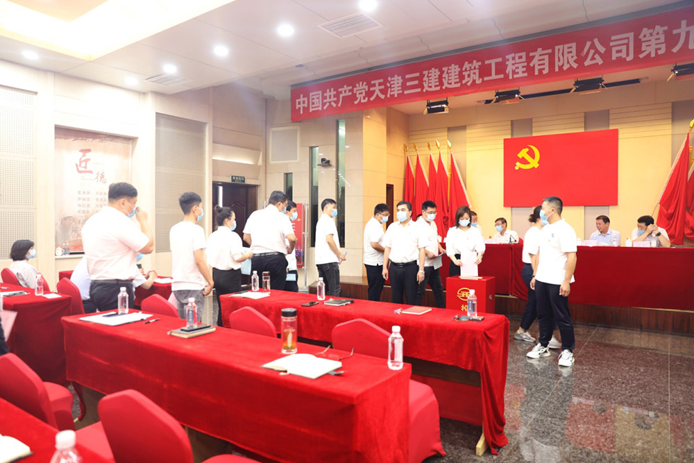 大會(huì)在隆重的國歌聲后正式開始,公司黨委書記扈朝陽同志代表天津三建公司第八屆黨委做工作報(bào)告,總結(jié)和回顧了2017年以來公司黨委的工作成績,部署和展望了今后五年的工作任務(wù),獲得全體黨員代表表決通過。大會(huì)第二項(xiàng)議程選舉第九屆中國共產(chǎn)黨天津三建建筑工程有限公司委員會(huì)和第九屆中國共產(chǎn)黨天津三建建筑工程有限公司紀(jì)律檢查委員會(huì)。工作人員首先宣讀了《中國共產(chǎn)黨天津三建建筑工程有限公司第九次代表大會(huì)換屆選舉辦法(草案)》,全體黨員代表舉手表決通過。根據(jù)“換屆選舉辦法”公司上一屆黨委推薦的總監(jiān)票人、監(jiān)票人和計(jì)票人名單,獲全體黨員代表舉手表決通過。
