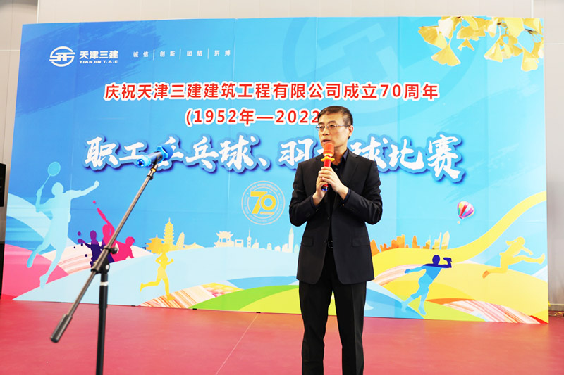 公司黨委書記、董事長扈朝陽同志為開幕式致辭并宣布比賽開幕。他首先對公司職工羽毛球、乒乓球比賽活動開幕表示祝賀。以組織體育比賽活動的形式慶祝企業成立70周年非常生動有趣、活潑向上。公司黨辦、工會的精心組織,職工們的踴躍參與,很受感動。而且活動請來了專業的體育裁判員,相信參賽的職工們能夠發揚天津三建人敢打善拼的意志品格,賽出天津三建公司團結拼搏的企業精神,踔厲奮發,勵精圖治,為實現和奮進百年企業目標做出新作為、新成果。最后,預祝大家取得好的比賽成績。